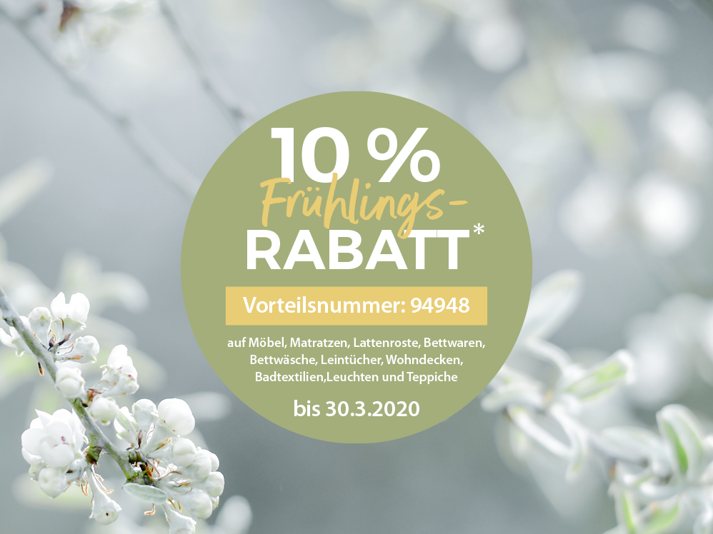 10 % Frühlings-Rabatt auf Möbel, Matratzen, Bettwäsche ...